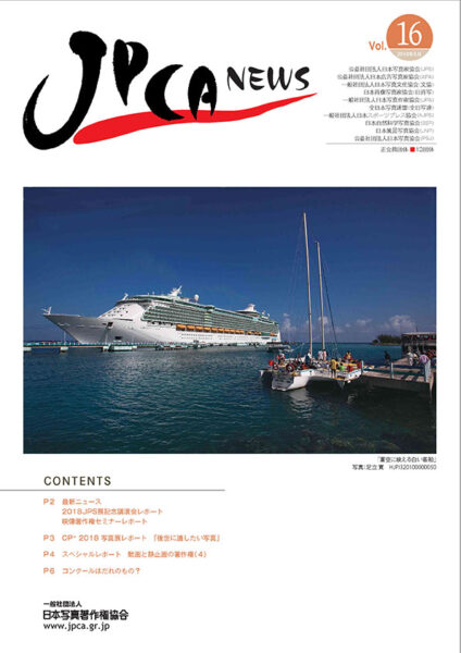 2018.05.15 JPCA NEWS 第16号 JPCA NEWS JPCA NEWS ダウンロード P2 最新ニュース 2018JPS展記念講演会レポート 映像著作権セミナーレポート P3 CP+2018写真展レポート 「後世に遺したい写真」 P4 スペシャルレポート 動画と静止画の著作権(4) P6 コンクールはだれのもの? JPCA NEWS 第15号 前の記事 JPCA NEWS 第17号 次の記事 特集記事 2024.08.01 フォトコンテスト主催者の皆さまへ 2023.08.17 生成AIに関する共同声明 2019.02.06 著作権法47条に関するガイドラインが合意されました(2019年1月22日策定) 2013.12.26 緊急声明 「言論・表現の自由」を侵害する「特定秘密保護法案」に反対します 2010.12.01 デジタル雑誌配信の権利処理ガイドラインについて 2009.08.27 「Google・ブック検索訴訟の和解案」に対する声明 最近の記事 ギャラリー 田沼武能 2025.12.29 年末年始休業のお知らせ 2025.12.1 26/2/22開催 写真著作権セミナーのご案内 2025.11.22 写真著作権テキストブック『考える写真著作権』第2版を発行しました 2025.11.21 写真著作権セミナー 東川町フォト・フェスタ2025のご案内 2025.07.11