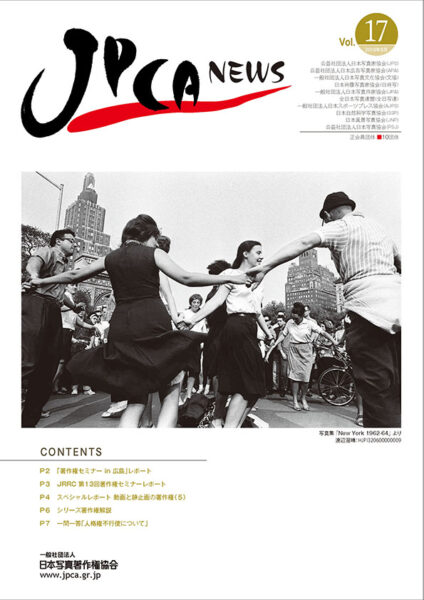2018.09.15 JPCA NEWS 第17号 JPCA NEWS JPCA NEWS ダウンロード P2 「著作権セミナーin広島」レポート P3 JRRC第13回著作権セミナーレポート P4 スペシャルレポート 動画と静止画の著作権(5) P6 シリーズ著作権解説 P7 一問一答 「人格権不行使について」 JPCA NEWS 第16号 前の記事 JPCA NEWS 第18号 次の記事 特集記事 2024.08.01 フォトコンテスト主催者の皆さまへ 2023.08.17 生成AIに関する共同声明 2019.02.06 著作権法47条に関するガイドラインが合意されました(2019年1月22日策定) 2013.12.26 緊急声明 「言論・表現の自由」を侵害する「特定秘密保護法案」に反対します 2010.12.01 デジタル雑誌配信の権利処理ガイドラインについて 2009.08.27 「Google・ブック検索訴訟の和解案」に対する声明 最近の記事 ギャラリー 田沼武能 2025.12.29 年末年始休業のお知らせ 2025.12.1 26/2/22開催 写真著作権セミナーのご案内 2025.11.22 写真著作権テキストブック『考える写真著作権』第2版を発行しました 2025.11.21 写真著作権セミナー 東川町フォト・フェスタ2025のご案内 2025.07.11